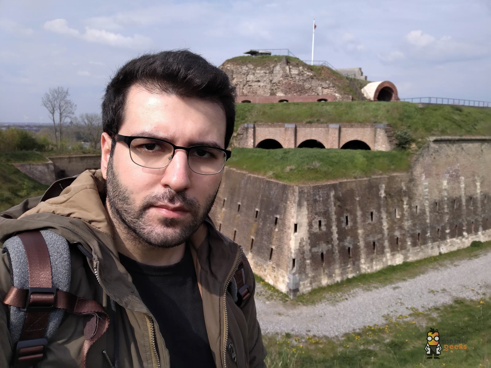 Nach ca. 2000 Kalorien, die ich verbraucht habe, und auf einem der höchsten Punkte in den Niederlanden stehend, nehme ich noch schnell ein Selfie auf. Ich weiß, dass Asus hier meist eine gute Qualität liefert, aber ich bin wirklich sehr überrascht zu sehen, dass die Qualität, sogar im Portrait-Modus, teilweise besser als bei einigen aktuellen Flaggschiffen ist. Gut, man sieht einen kleinen Fehler rechts an meiner Brille, aber ohne weiteren Tiefensensor vorne ist das schon zu verkraften. Generell gefällt mir aber der Dynamikumfang, die Farben und die Details. Es gibt zwar einen Beauty-Modus, den man Individuell einstellen kann, aber wenn dieser ausgeschaltet ist, ist dieser auch wirklich aus. Statt einem Tiefensensor hat das Asus Zenfone M2 aber neben dem 13 MP f/2.0 Sensor einen LED Blitz für Selfies im dunkeln oder bei schlechten Lichtbedingungen, was für die meisten jungen Menschen wahrscheinlich wichtiger ist. Ein separater Blitz ist da oft besser als ein Display-Blitz, wie man es bei den meisten Smartphones hat.