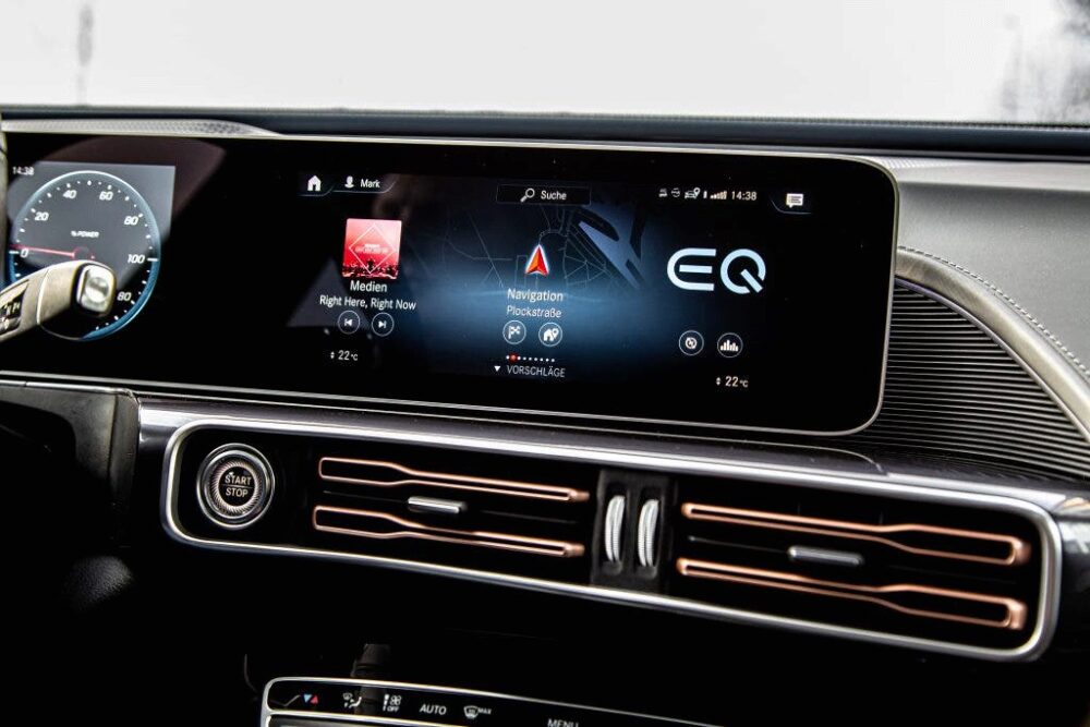 Das Interieur des Mercedes EQC ist über jeden Zweifel erhaben. Die Verarbeitungsqualität ist top, und die leichten Kupferakzente an der Lüftung sind für mich eine hervorragende Anlehnung an den elektrischen Antrieb des EQC.