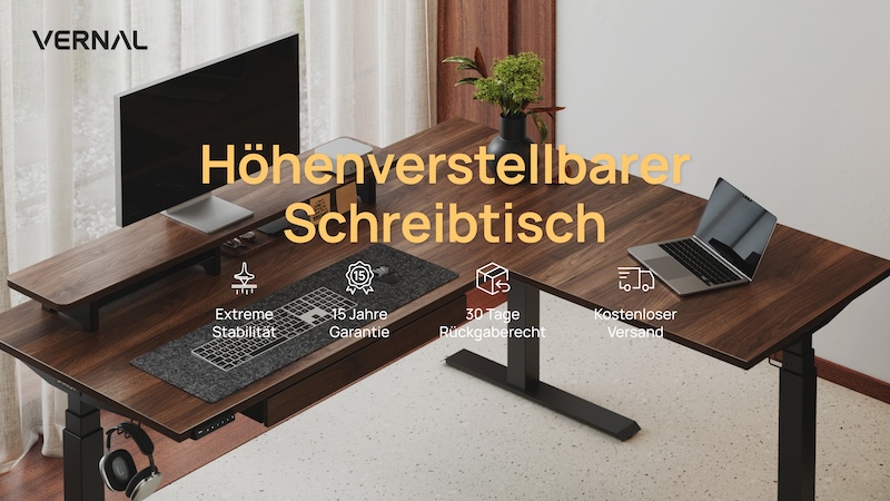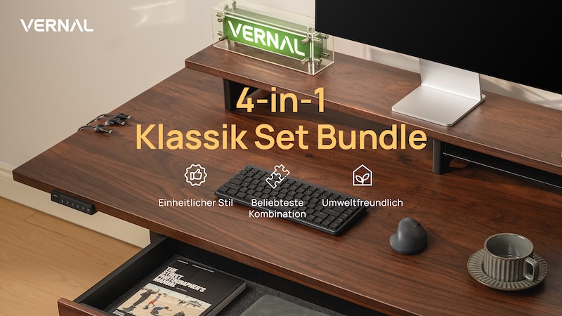 Jetzt ist der perfekte Zeitpunkt, um den Arbeitsplatz zu Hause neu zu gestalten: Vernal bietet zur Black Friday Saison seine beliebtesten 4-in-1 Classic Set Bundles und höhenverstellbare Schreibtische zu historischen Tiefstpreisen an. Wer auf maximale Flexibilität, Stabilität und ein wohnliches Design setzt, findet hier die ideale Lösung für sein Home Office – und kann zusätzlich bei exklusiven Cashback- und Gratisaktionen profitieren.