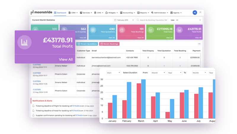Viele Reisebüros setzen auf Moonstride, um Buchungsprozesse, Kundenverwaltung und Dokumentenmanagement zentral zu steuern. Die Plattform bietet maßgeschneiderte Funktionen für die Reisebranche, darunter Reiseplanung, Rechnungsstellung, Automatisierung von Reiseabläufen sowie die Integration von Buchungs- und Zahlungsdaten. Moonstride punktet mit branchenspezifischen Tools und einer schnellen Abwicklung von Buchungen.