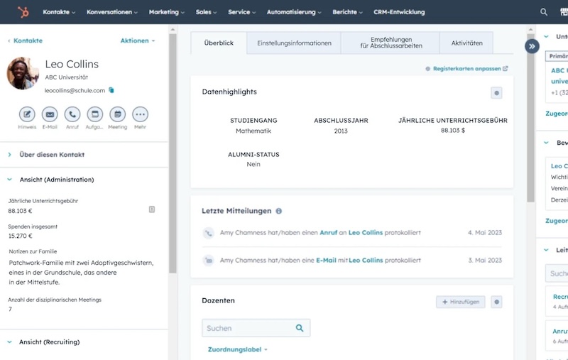 | Kontaktverwaltung | Individuelle Profile, Historie, Segmentierung | Lead- und Kontaktmanagement, Aktivitätenverfolgung |