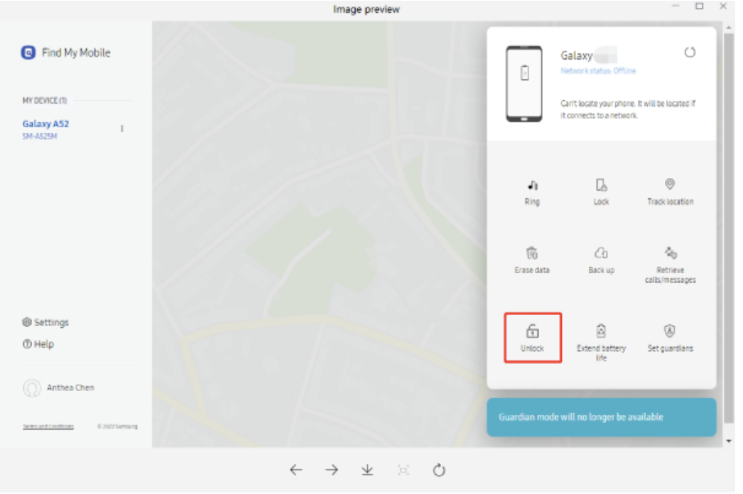 - Öffnen Sie auf einem beliebigen Computer oder einem anderen Smartphone die Website Samsung Find My Mobile.