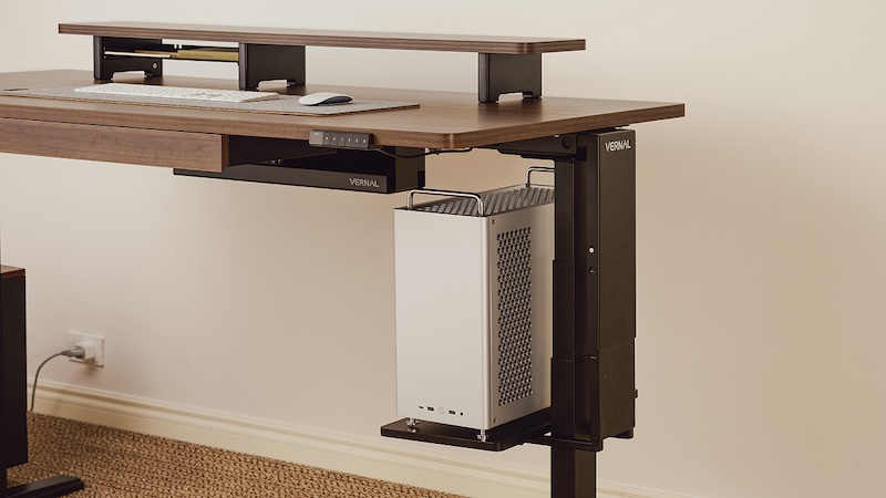 Der Vernal Core3 ist für eine Tragkraft von 160 kg ausgelegt – ein Wert, der in der Praxis bestätigt wurde. In umfassenden Belastungstests hält das System auch im Dauerbetrieb das Tempo, ohne dass es zu Geschwindigkeitsverlust oder erhöhter Lautstärke kommt. Selbst bei punktueller Belastung an der Kante bleibt die Tischplatte standfest. Das Ergebnis: Eine zuverlässige, dauerhafte Performance, die weit über den Alltag hinausgeht.